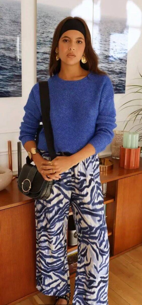 Un pantalon fluide qui capte tous les regards. Avec son imprimé bleu aux allures aquatiques et sa coupe ample, Pénélope insuffle une élégance décontractée. Son tombé léger et son jeu de motifs en font la pièce parfaite pour affirmer un style audacieux et assumé.