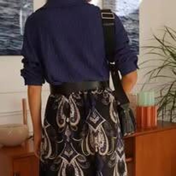 La jupe Théan sublime la féminité avec son imprimé riche en nuances bleues et dorées. Sa coupe fluide et sa fente délicate dévoilent subtilement la jambe pour un effet à la fois raffiné et moderne. Une pièce forte qui élève instantanément le look.