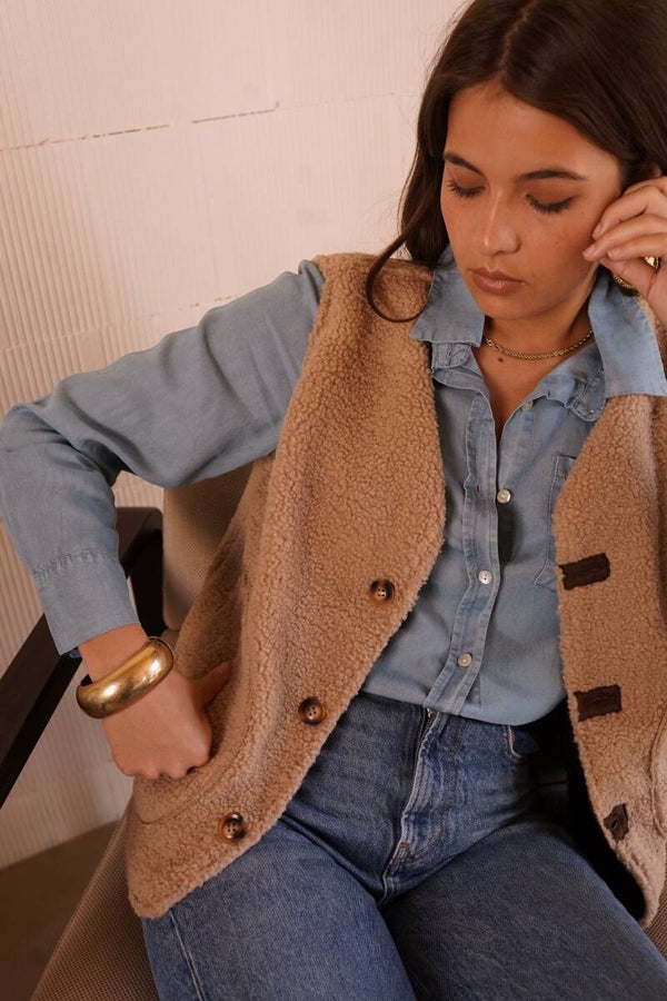Conçue dans un tissu léger au toucher doux, elle offre un confort optimal tout en gardant une allure intemporelle. Sa simplicité fait d’elle une pièce polyvalente, facile à porter au quotidien, que ce soit boutonnée ou en layering.